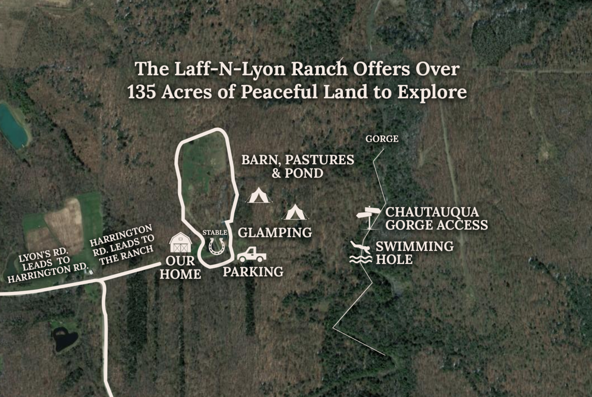 We built our humble home on the first two acres of the Ranch in 2005. With sweat equity and determination we expanded the Ranch to include: a 9 stall horse barn, approximately eight acres of pasture and 130 forested acres along the Chautauqua County gorge. We are finally at a place in our lives where we want to share what we love with others who may want to disconnect (from the noise of everyday life) and reconnect (with yourself, nature, animals and others with similar interests).